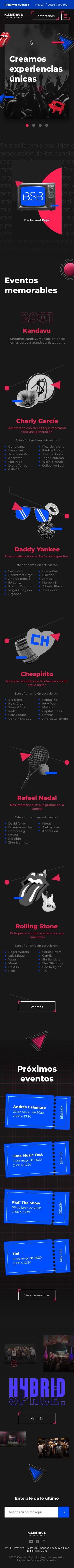 Se planteó una plataforma vibrante donde el usuario, a traves de líneas de tiempo, conosca, reviva y disfrute de los artistas que han llegado a Perú con Kandavu. Haciendo de esta una experiencia memorable.